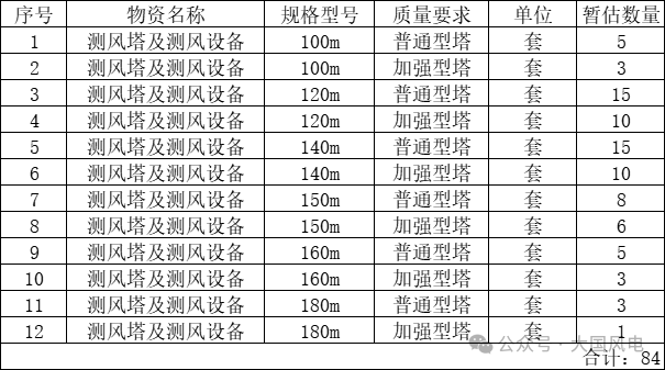 招標(biāo)范圍:本次招標(biāo)分為1個(gè)標(biāo)段,中國能源建設(shè)集團(tuán)投資有限公司管理內(nèi)的所有新建測(cè)風(fēng)塔的采購、安裝,需遷移測(cè)風(fēng)塔的拆除、安裝,測(cè)風(fēng)設(shè)備的采購、安裝,測(cè)風(fēng)塔及測(cè)風(fēng)設(shè)備的維護(hù)(提供一年質(zhì)量保證期服務(wù))、數(shù)據(jù)服務(wù)和測(cè)風(fēng)塔后續(xù)處置等。