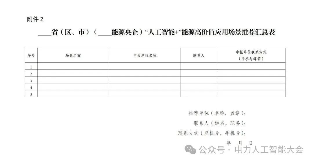 4.請各省級能源主管部門、中央企業于2025年12月29日前將高價值應用場景申報書(詳見附件1)、推薦匯總表(詳見附件2)蓋章件一式三份紙質版及電子版(光盤刻錄)寄送至國家能源局科技司。申報場景命名規則為“推薦地區/單位名稱-序號-場景名稱”(序號與推薦匯總表一致)。