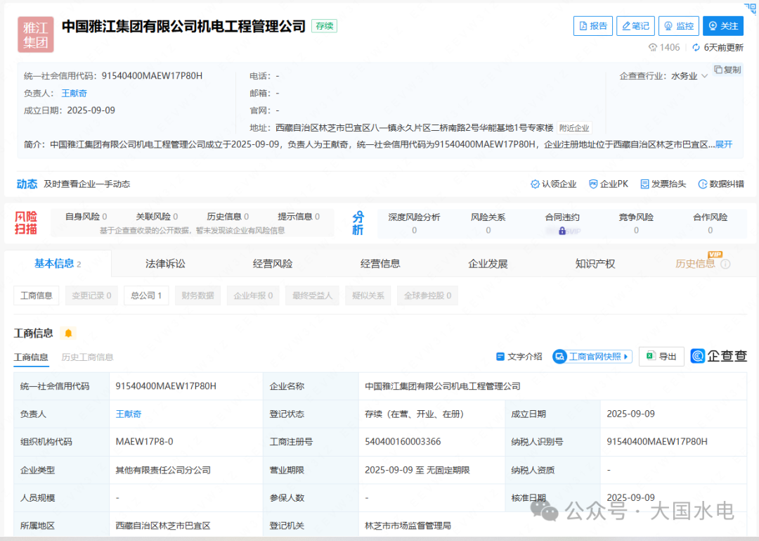 此前9月2日,中國雅江集團有限公司建設(shè)管理一公司,中國雅江集團有限公司建設(shè)管理二公司成立。