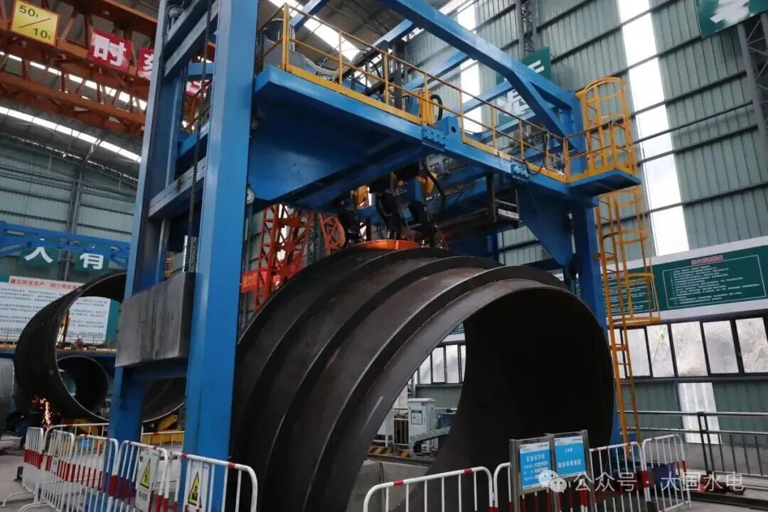 ▲國網新源縉云電站壓力鋼管加勁環自動焊接設備。