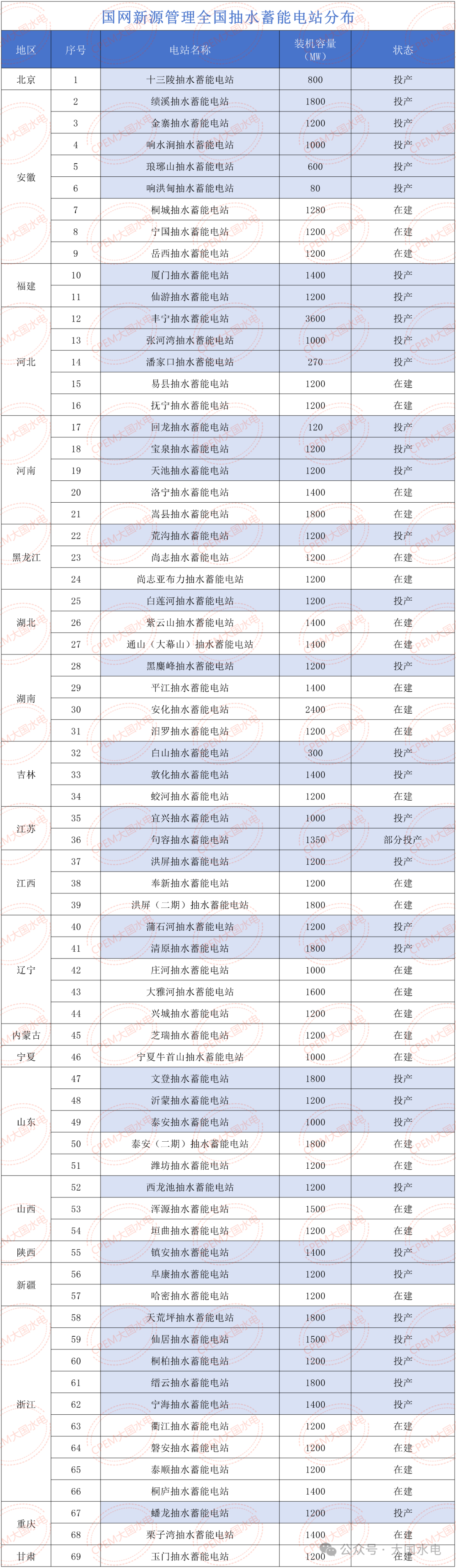 國網新源抽水蓄能電站分布覆蓋全國多個省份,截至2025年9月底,管理抽水蓄能電站69座,管理裝機容量9313.4萬千瓦,以下是CPEM大國水電整理的已投產和在建電站分布及關鍵信息: